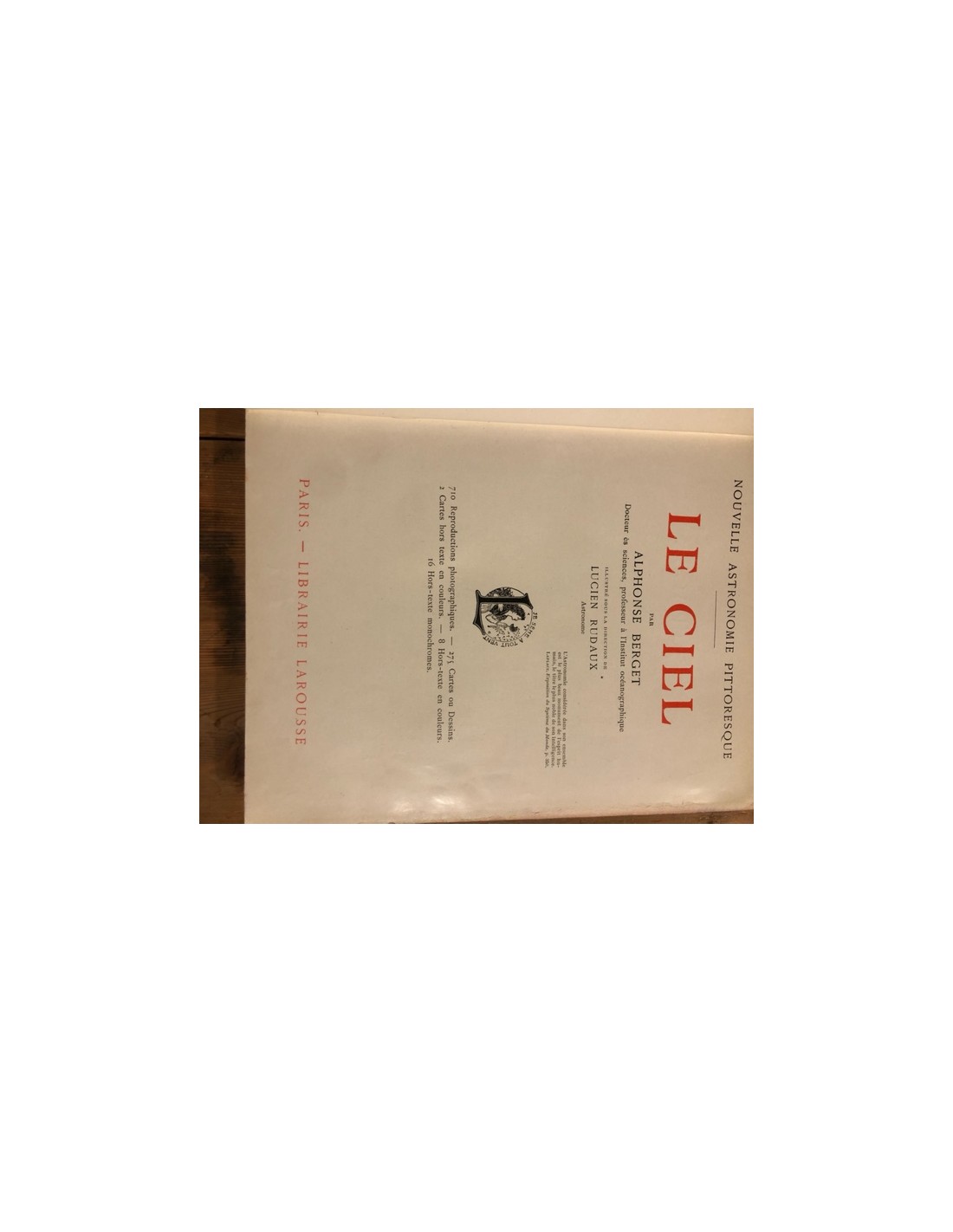 Nouvelle Astronomie Pittoresque.Auteurs: Alphonse Berget, Lucien RudauxEditeur: LarousseDate de parution: 1923Etat: occasion, usure des bords de la couverture